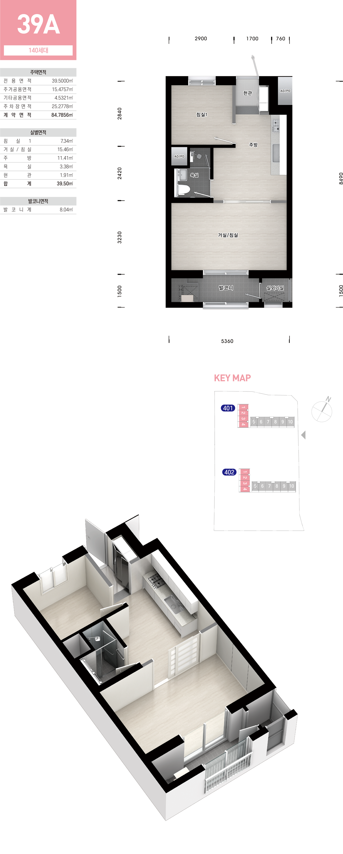 39형은 주거전용면적과 주거공용 면접을 합하면 약 17평 정도입니다. 베란다가 있는 방 2개, 화장실 1개 구조입니다.