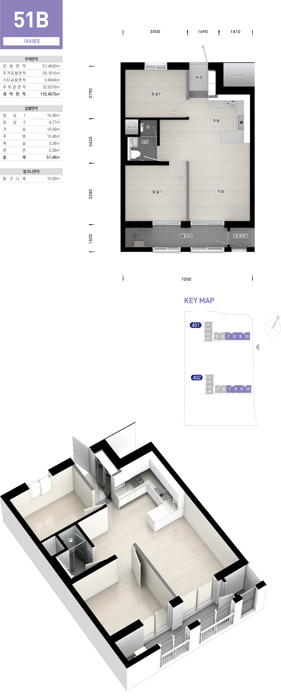 51형은 약 21평으로 46형과 동일한 타입을 가지고 있습니다.